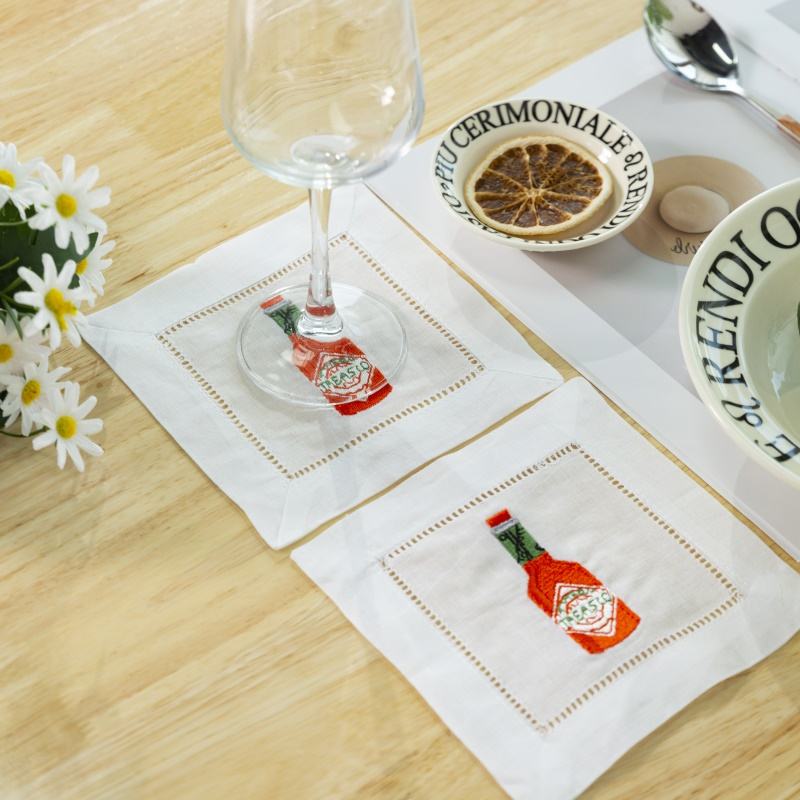 Posavasos de cóctel Hemstitch de lino y algodón bordado, servilleta para boda moderna, diseño de logotipo personalizado, decoración artística al por mayor a granel