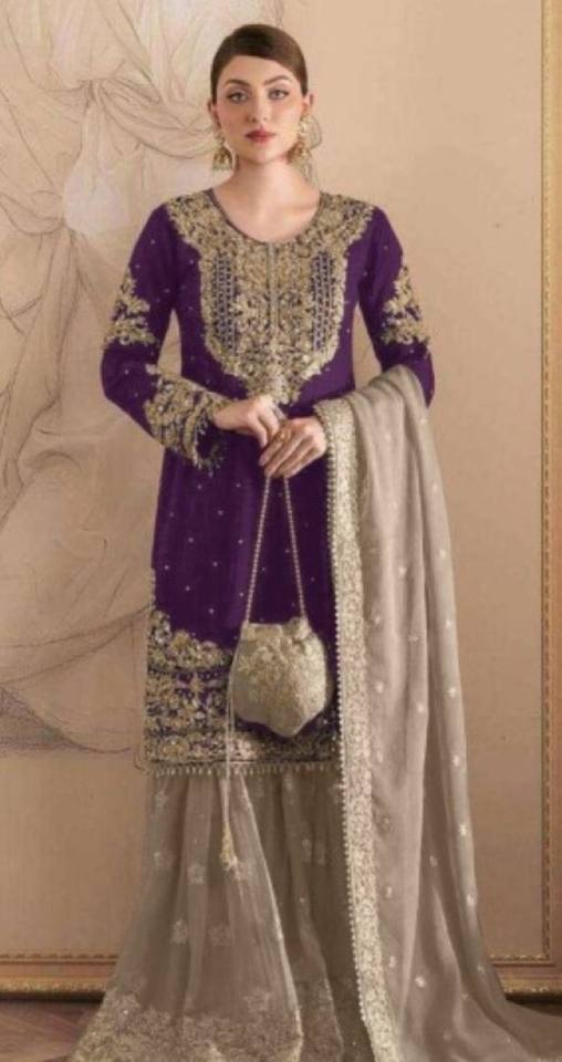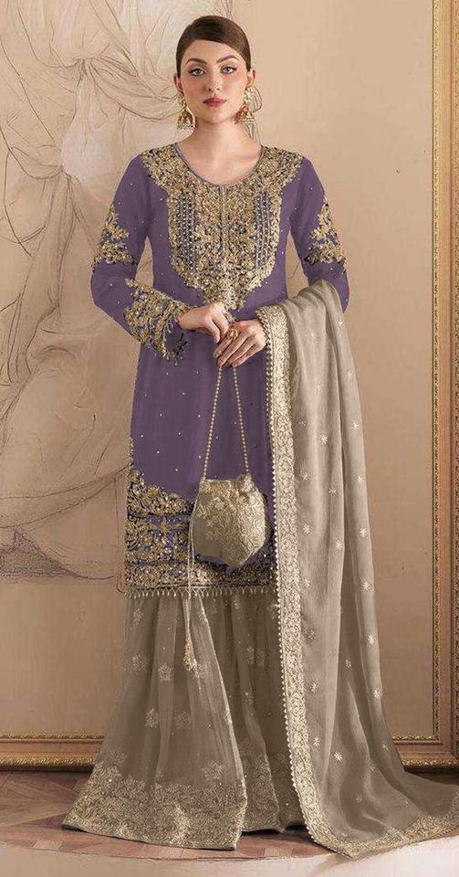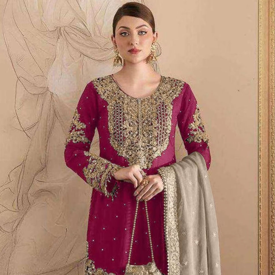 Traje Sharara Semisellado de Georgette Sintética Bordado con Lentejuelas, de Secado Rápido, Estilo Moderno para Todas las Estaciones