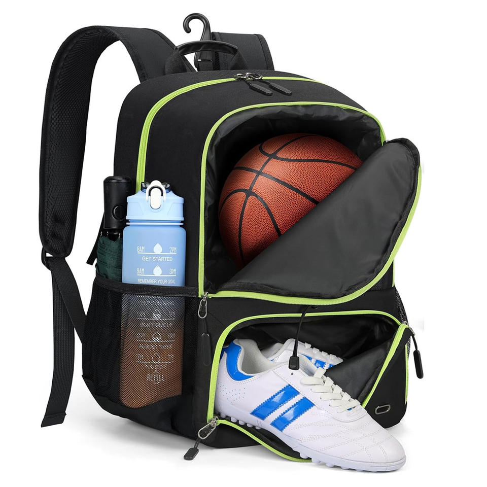 Mochila de fútbol bordada con compartimento para bolas, etiqueta personalizada, bolsa de equipo deportivo duradera para entrenamiento o viaje en equipo
