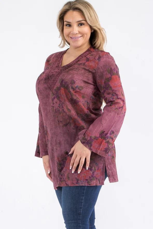 Túnica Medieval Bohemia con cuello en V de encaje bordado, Top informal de manga larga para mujer