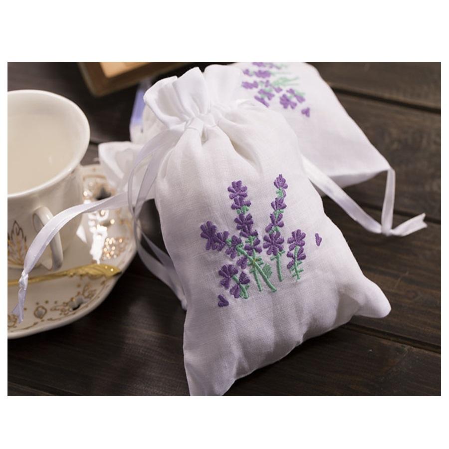 Bolsita de lavanda bordada, funda de lino bordada de alta calidad