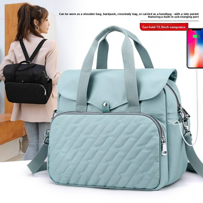 Embroidered Logo Zipper Closure Polyester Lining USB Charging Multi-Purpose Laptop Mobile Phone Bag Women's Summer Backpack