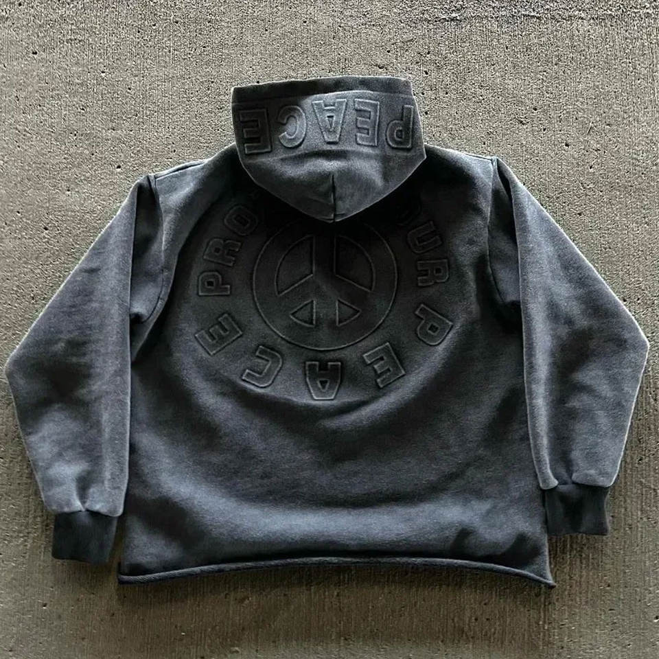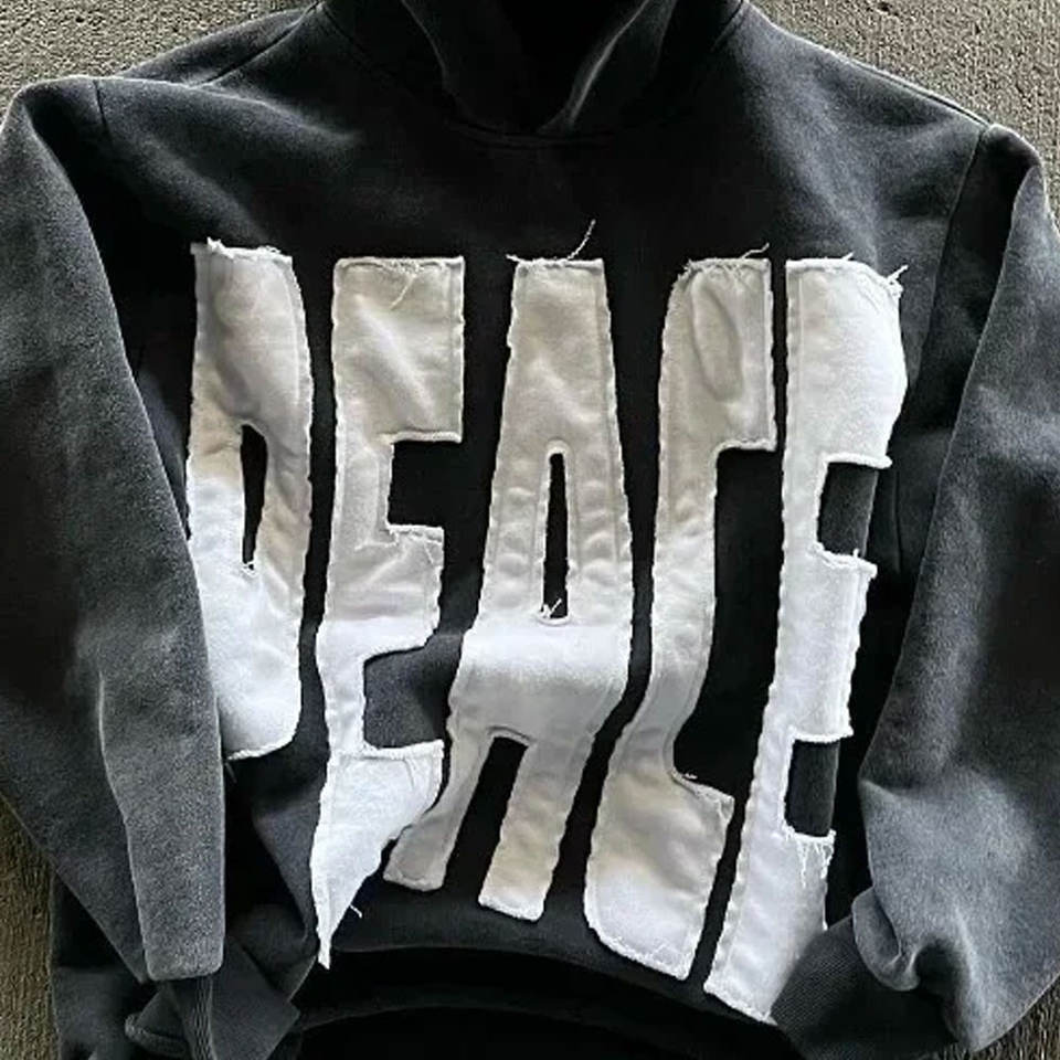 Sudadera con Capucha para Hombre con Diseño Estampado y Parche Bordado, Sudadera con Capucha para Hombre con Bordado Cosido a Mano y Aspecto Desgastado