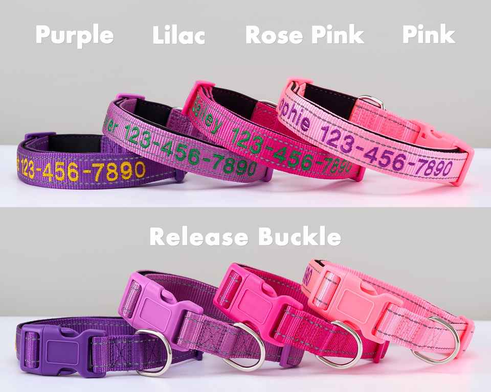 Nombre de mascota púrpura bordado, collar reflectante ajustable personalizado con correa para perros, tamaño S/M/L/Xl en varios colores