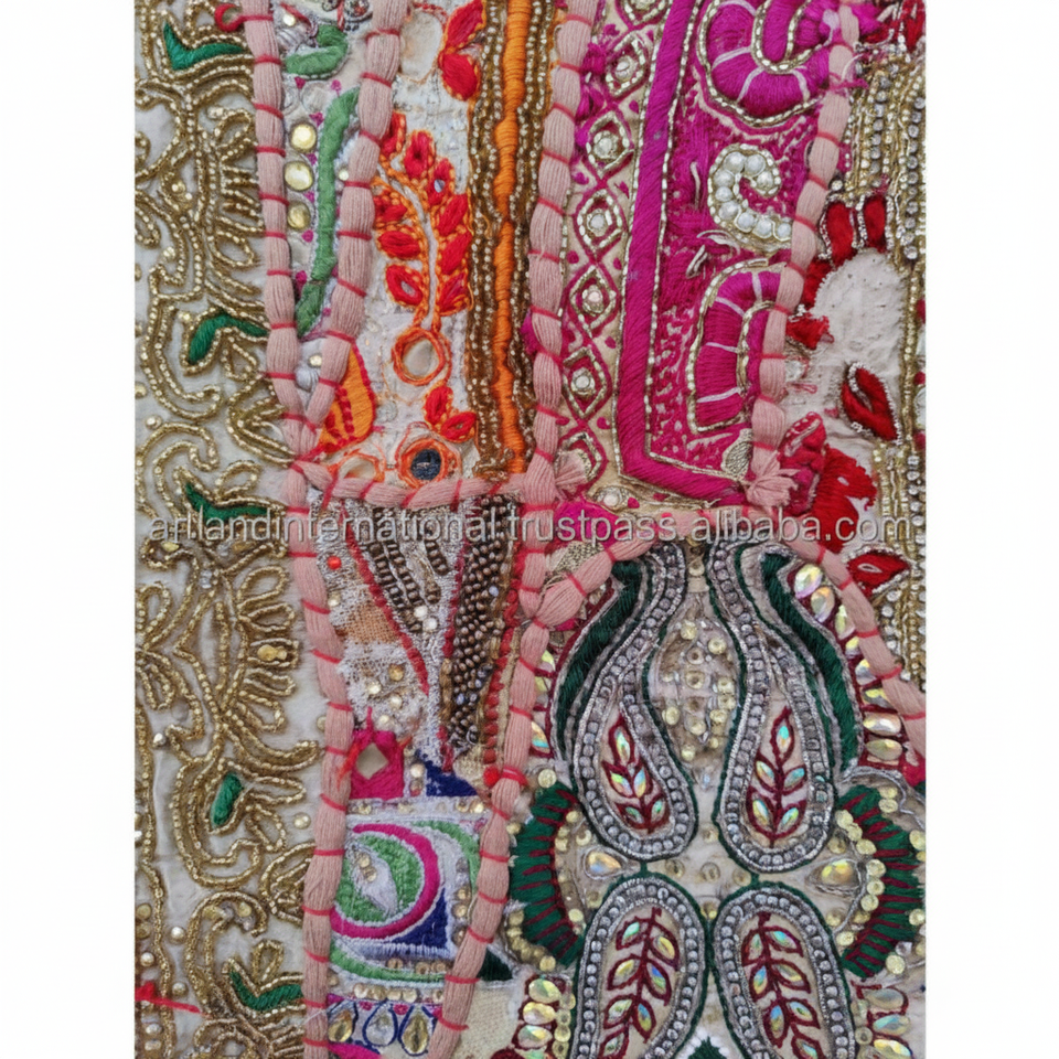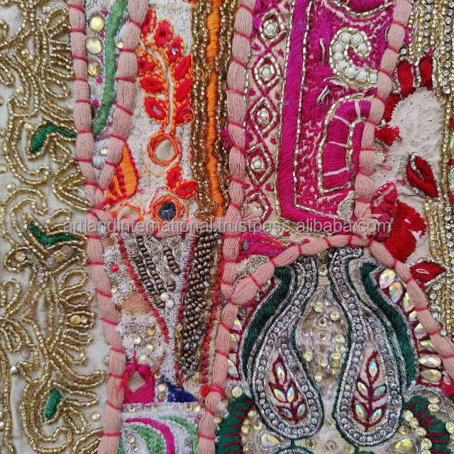 Textiles bordados Patchwork diseño Banjara estilo con cuentas ilustraciones con cuentas Patchwork hecho a mano tapiz Vintage pared arte pesado