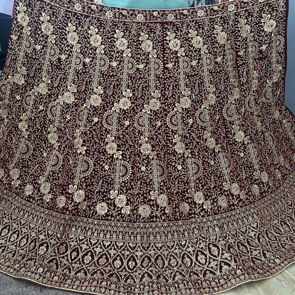 Work on fabric:VELVET LEHENGA