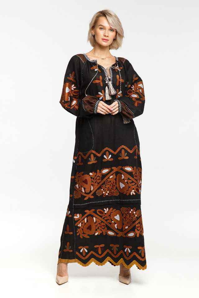 Bordado Vyshyvanka étnico ucraniano Folk vestido de lino natural estilo bohemio Maxi vestido de verano con borla decoración vestido