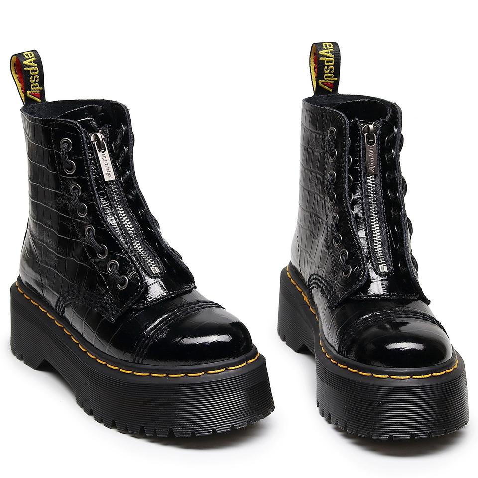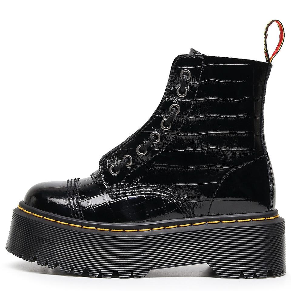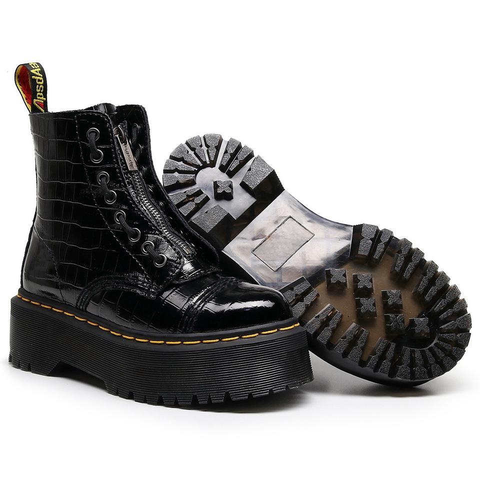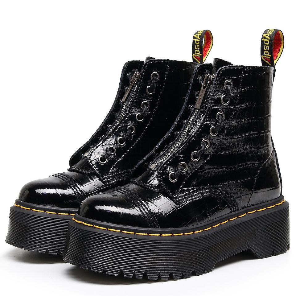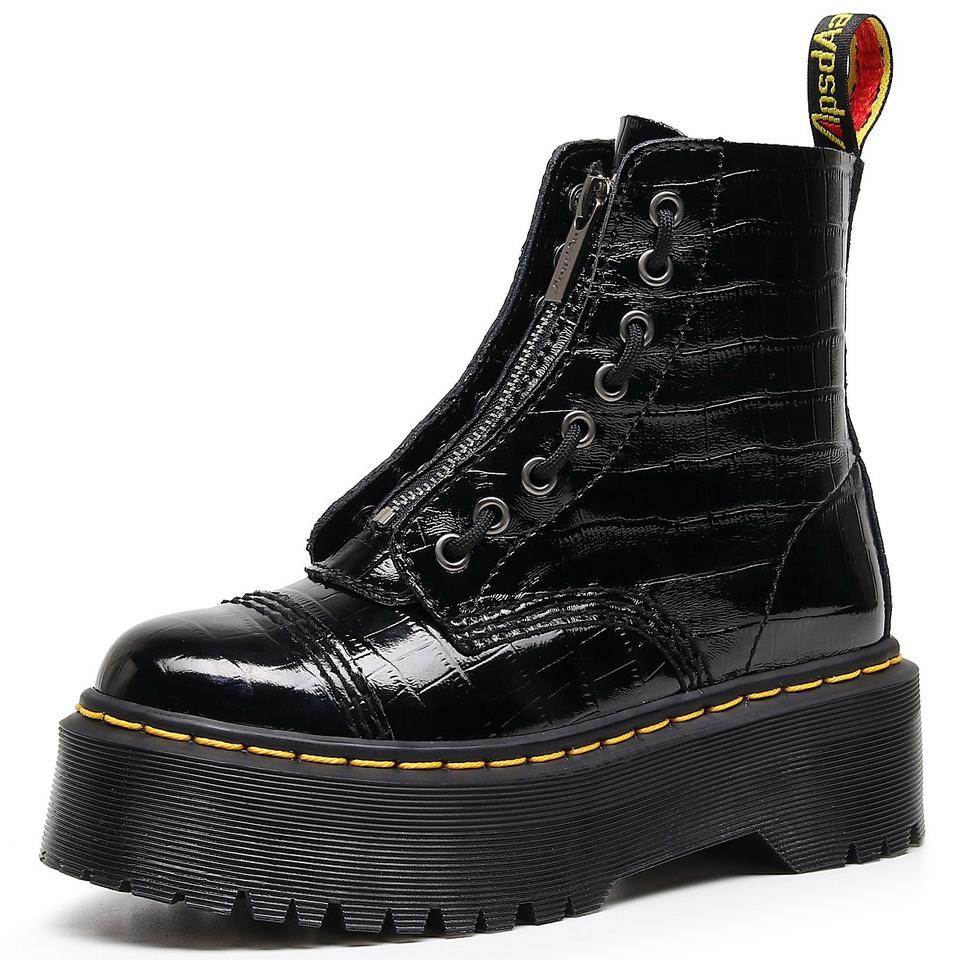 Botas de locomotora bordadas de doble capa con suela gruesa y 8 agujeros, con cremallera frontal, botines estilo inglés con cordones