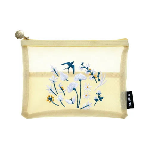 Bolso pequeño de malla transparente con patrón bordado, material de nailon, suministros de almacenamiento portátiles para uso diario