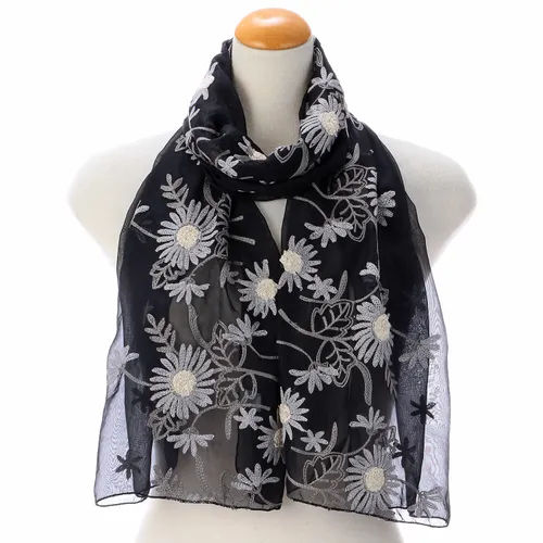 Bufanda bordada con diseño de flores, moderna y ligera, para mujer.