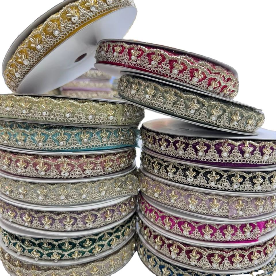 Bordado de encaje con pedrería y cuentas para zapatos, bolsos y prendas de vestir, lavable, 1 pulgada de ancho, colores personalizados, venta al por mayor