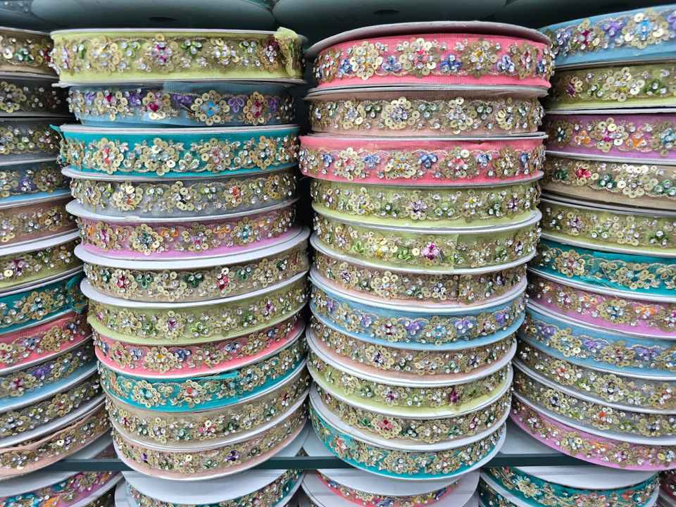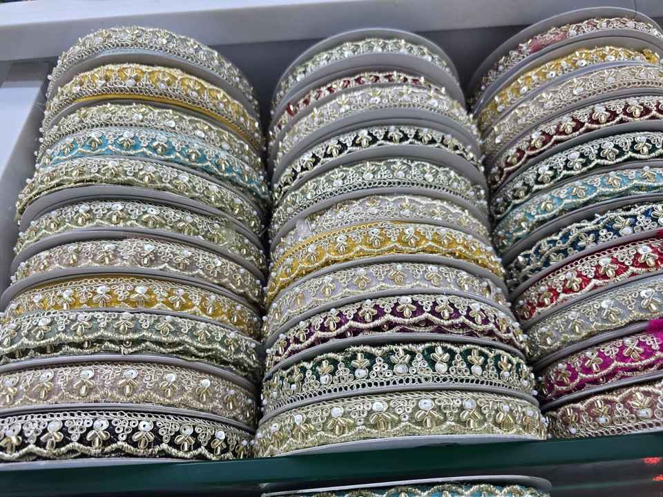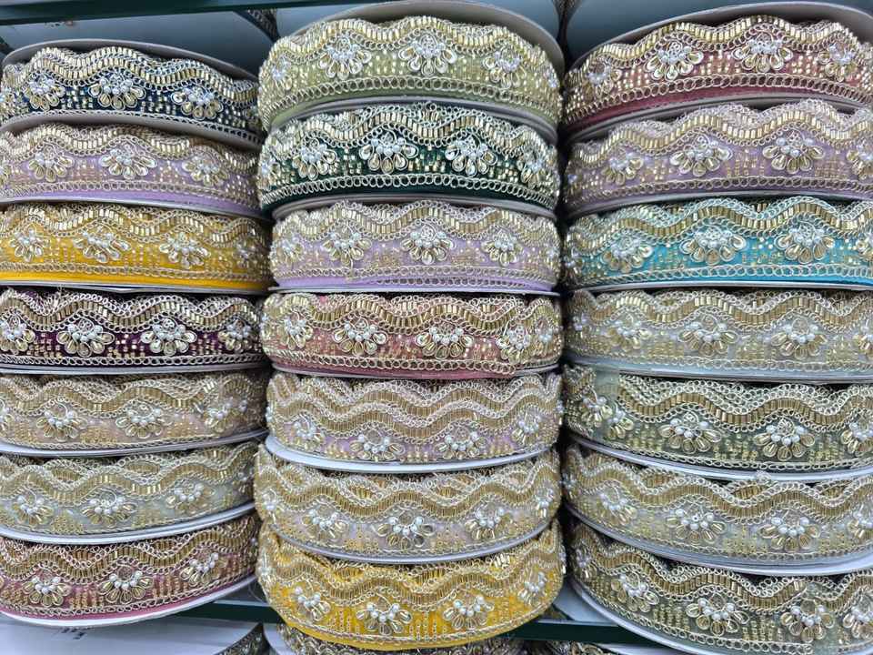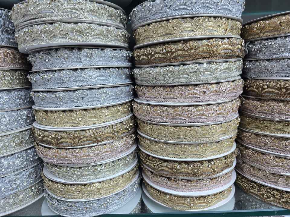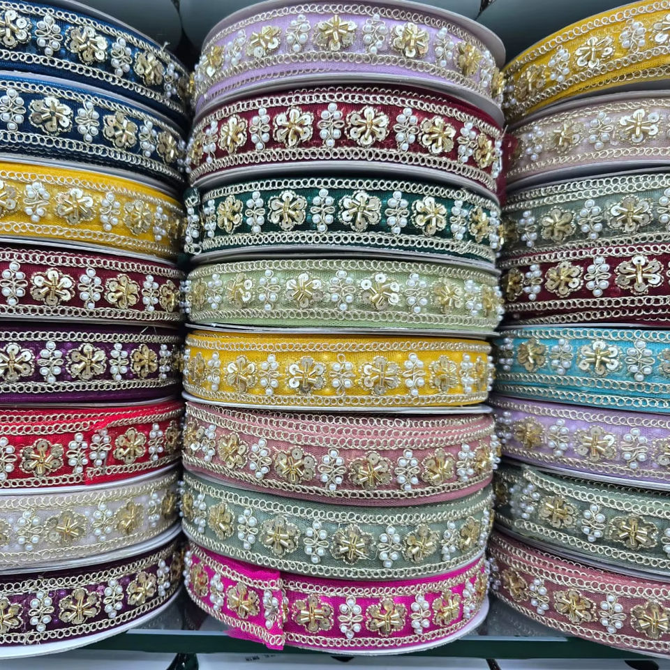 Bordado de encaje metálico de poliéster con pedrería y cuentas para zapatos, bolsos y textiles del hogar, lavable, 1 pulgada de ancho, personalizado
