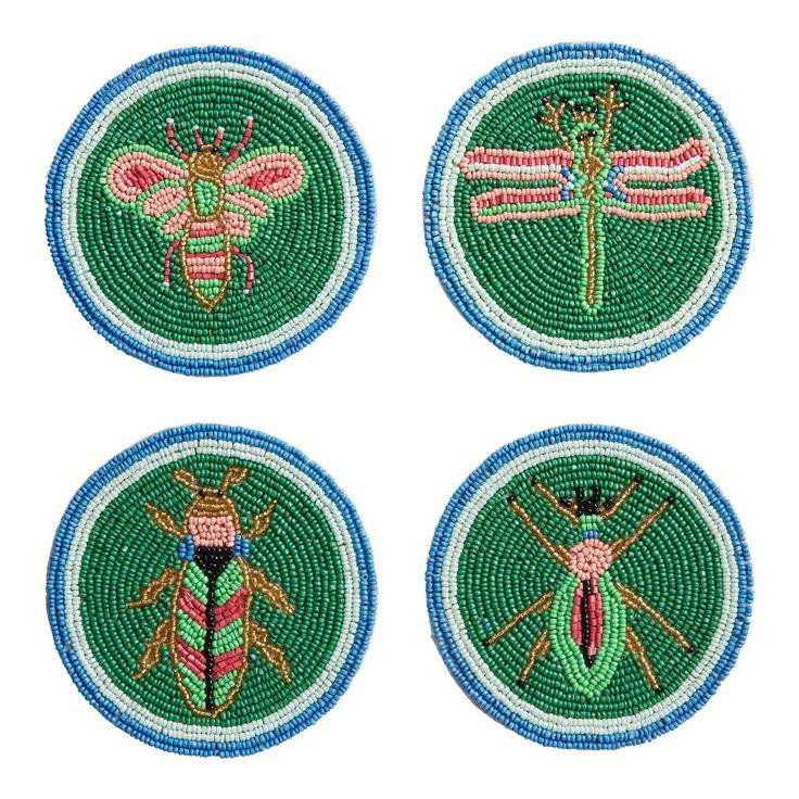 Juego de Posavasos Bordados con Diseño Único de Insectos, Hechos a Mano, Colección de Mesa Elegante de la India