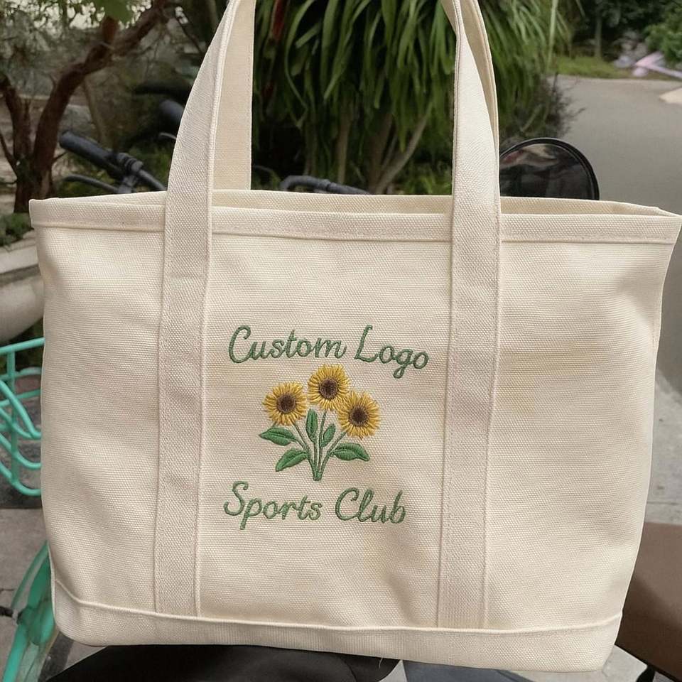 Bolsa de Mano Deportiva con Bolsillo, de Lona de Algodón Bordada, Reutilizable, Personalizada con Logotipo de Letras, con Detalles en Dos Tonos