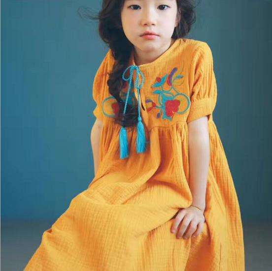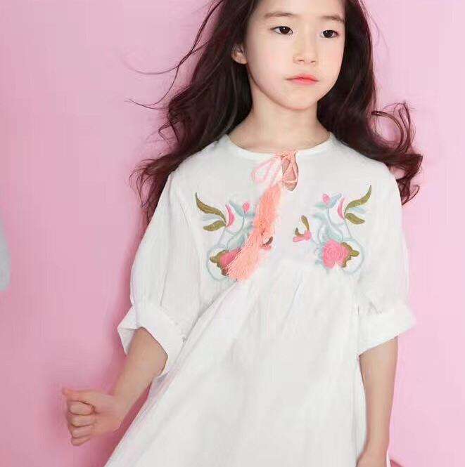 Vestido de princesa de gasa elegante de verano para niños con imagen bordada