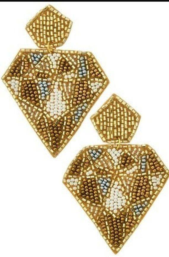 Pendientes Bordados con Decoración de Diamantes de Imitación, Pendientes de Hoja con Cuentas, Hechos a Mano en India, para Mujeres y Niñas