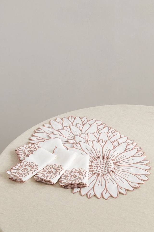 Juego de Mantel y servilletas con forma de flor bordada para el hogar, restaurante, boda, lino blanco, diseño de girasol de lujo, Mantel y servilleta