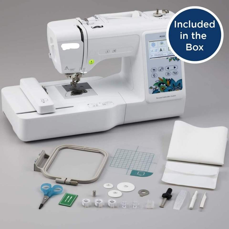 Máquina de bordar, PE535, 80 diseños de bordado incorporados, 9 estilos de fuente, área de bordado de 4" x 4"