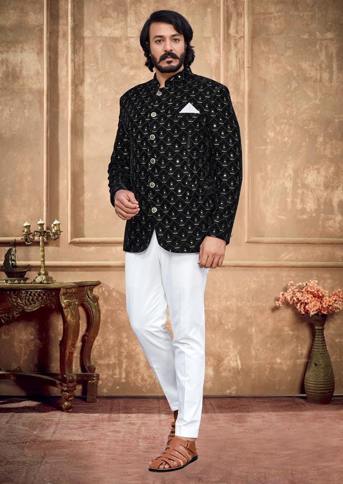 Jodhpuri-Chaqueta de terciopelo con espejo bordado para hombre, chaqueta de trabajo, vino