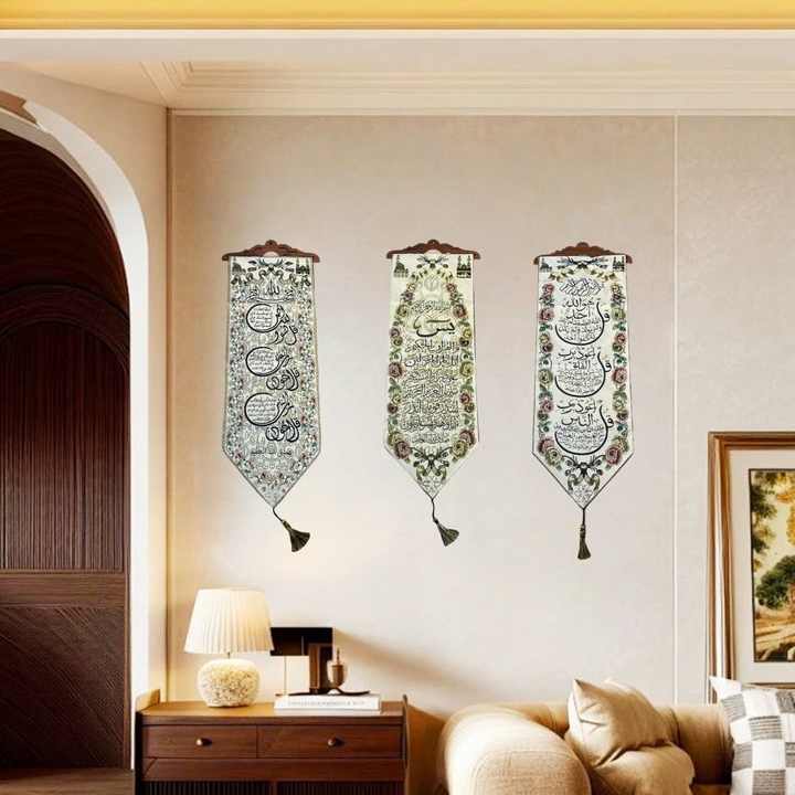 Tapiz Bordado con Escrituras, Cuadro Decorativo para Sala de Estar de Estilo Medio Oriente, Tapiz de Pared con Caligrafía Árabe, 33x103cm