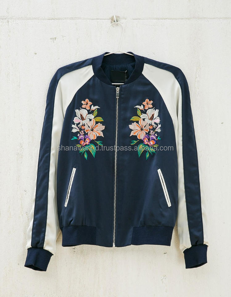 Floral Embroidery Bomber Jacket