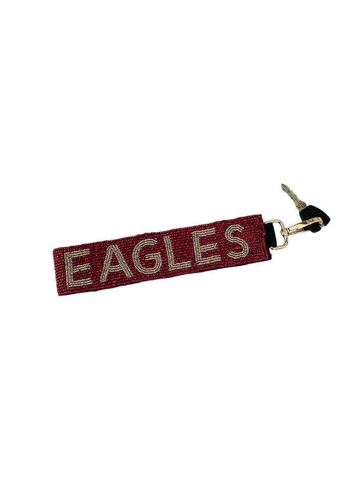 Llavero con Correa Bordada, Llavero Único con Cuentas de Águilas, Destaca con un Patrón de Cuentas Personalizado, Llavero con Letras en Color Rojo y Dorado