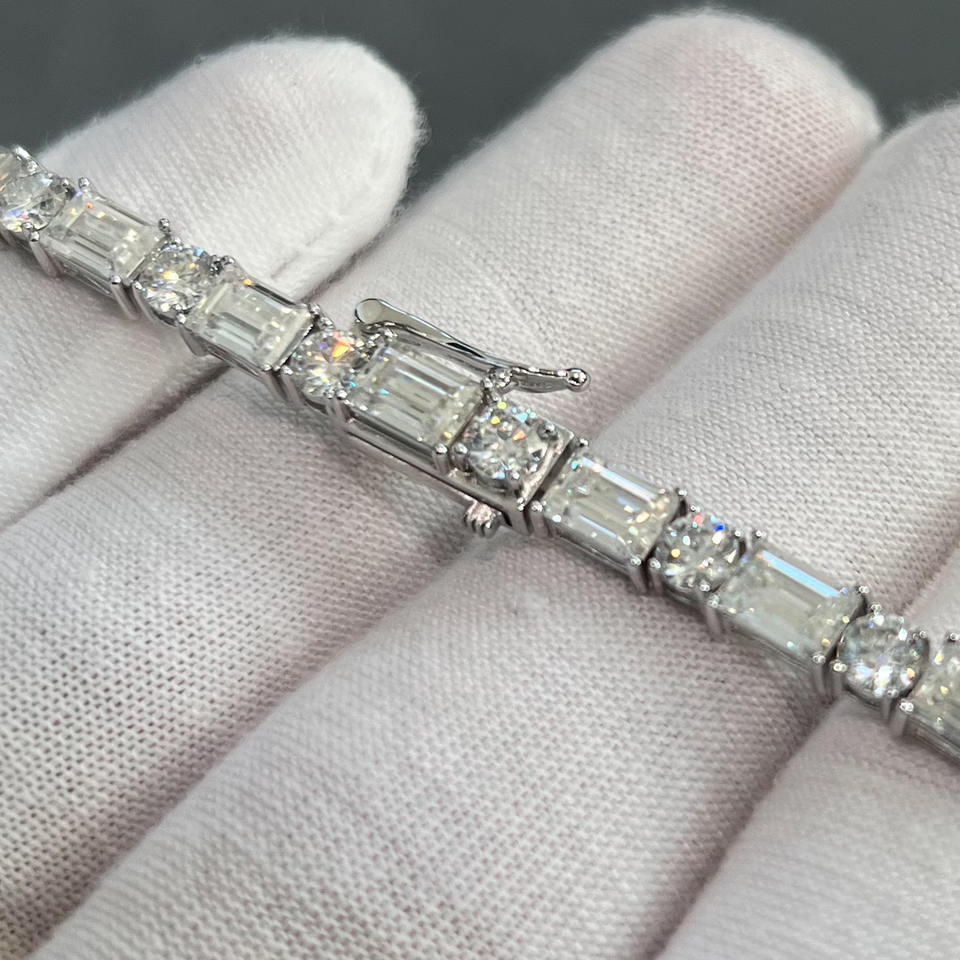 Esmeralda y corte redondo VVS Moissanite diamante chapado en oro 925 Plata tenis pulsera mujer joyería disponible al mejor precio