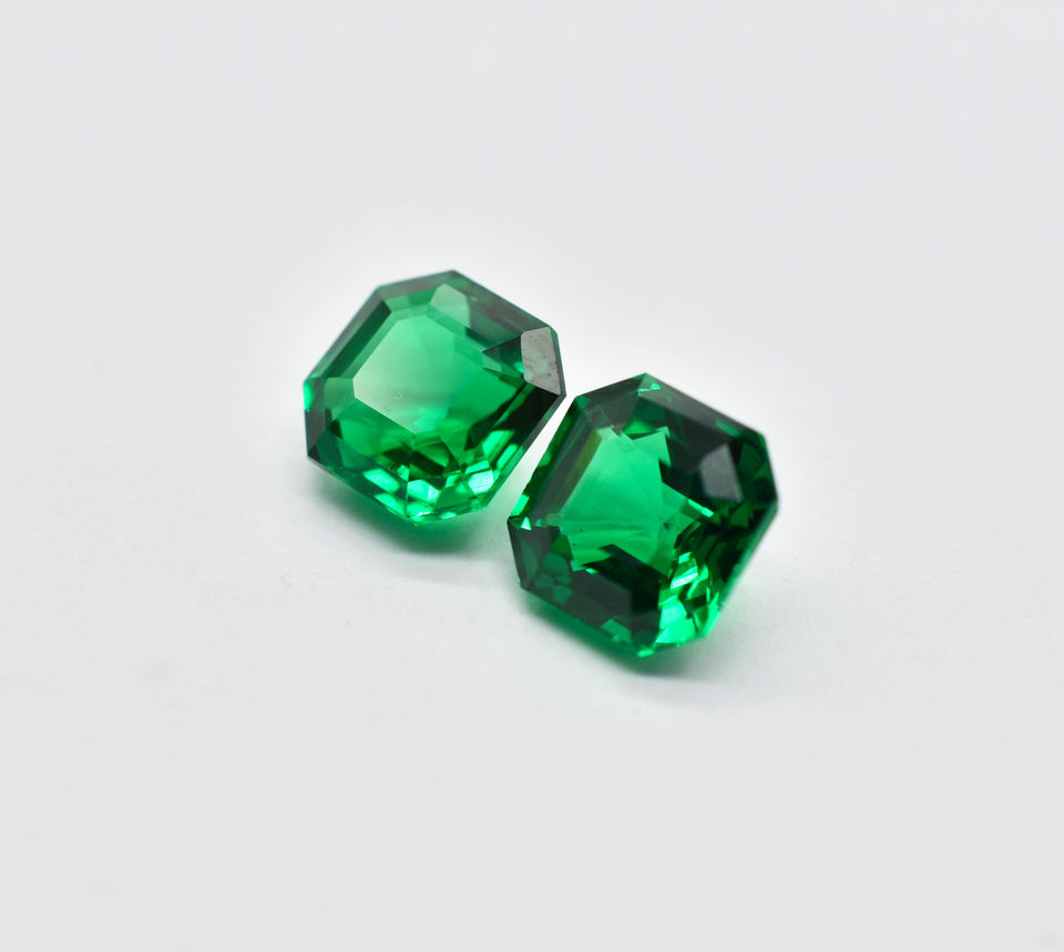 Esmeralda Asscher Par de piedras preciosas facetadas Tamaño de 8 MM Pares de piedras preciosas sueltas Nanosital Creado en laboratorio Esmeralda verde para la fabricación de joyas.