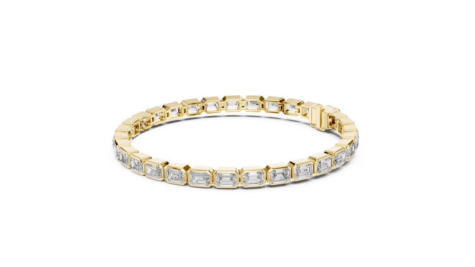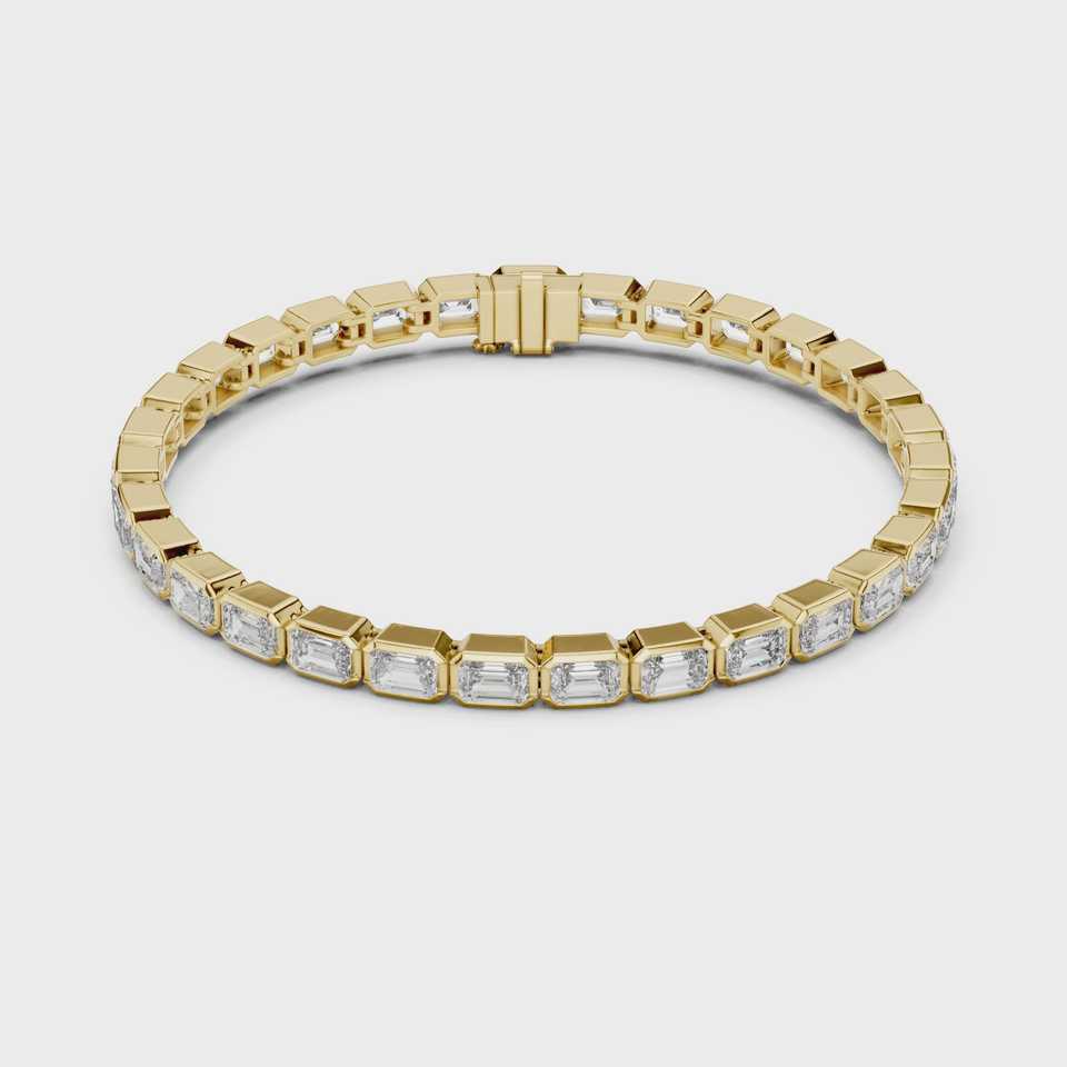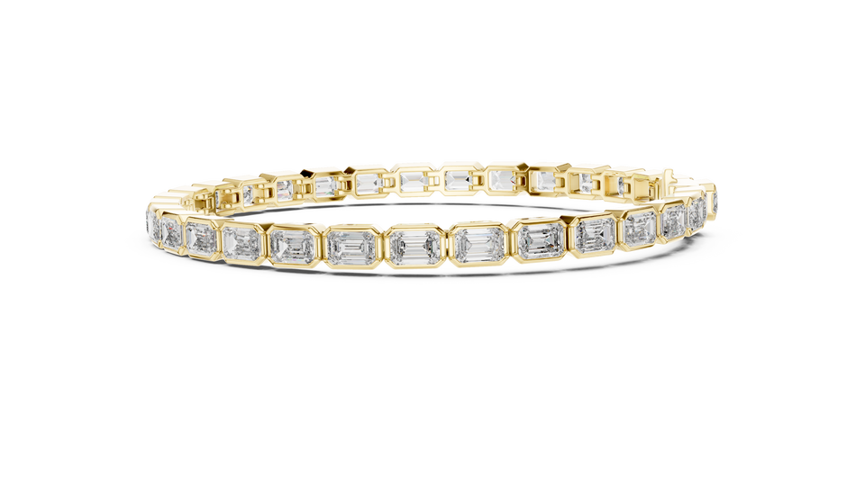 Pulsera de Diamantes Cultivados en Laboratorio con Bisel Esmeralda, Oro Amarillo de 10K, 14K, 18K con Engaste de Bisel para Compromiso y Boda