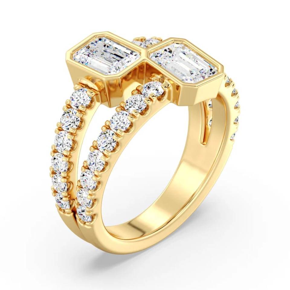 Anillo de Esmeralda con Bisel y Anillo Dividido
