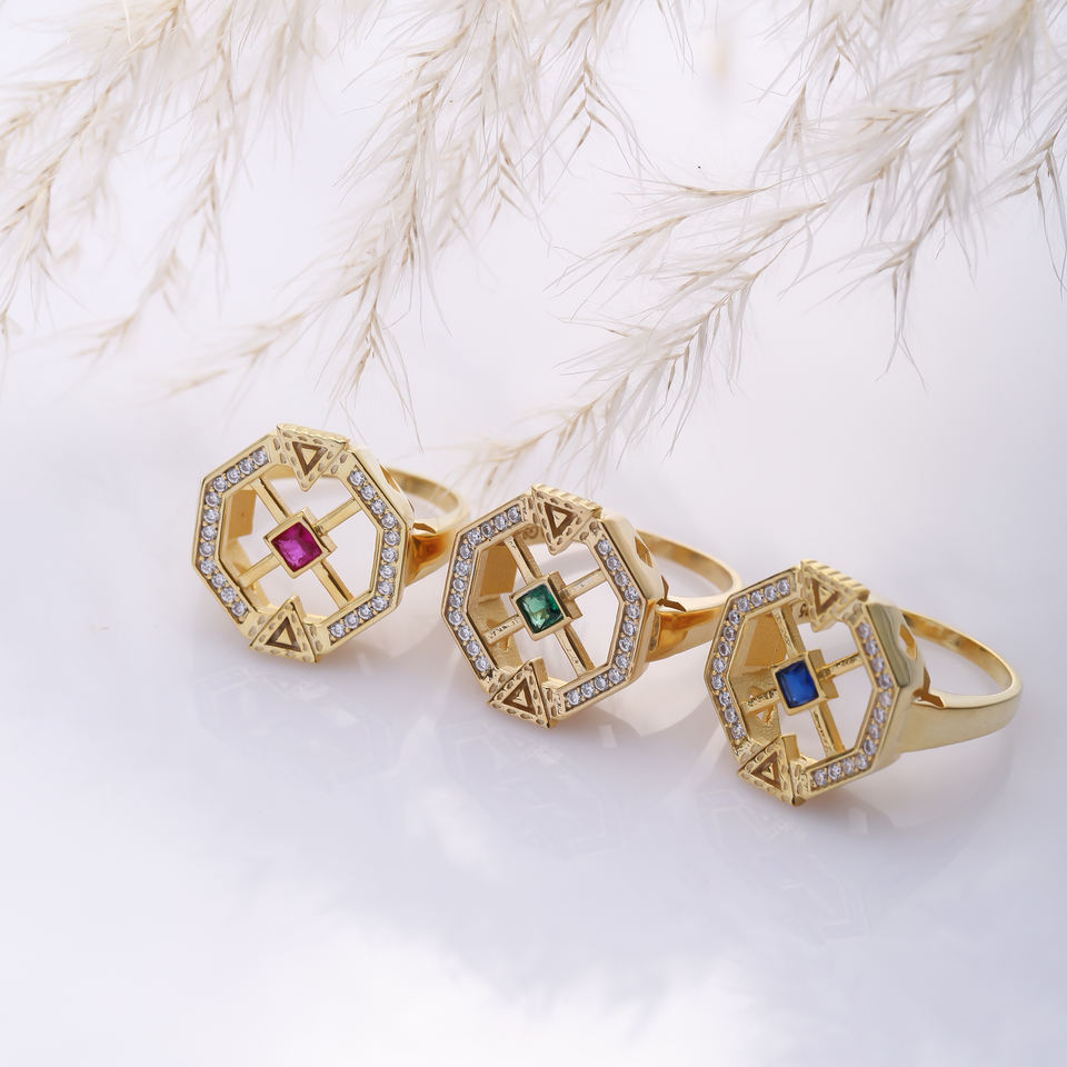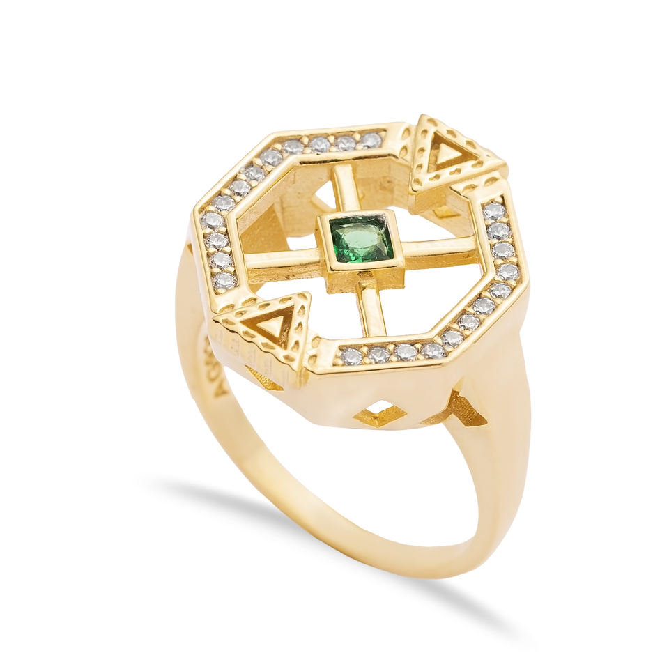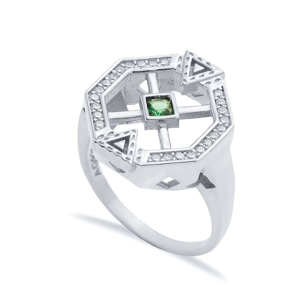 Anillo de Plata de Ley 925 con Piedra de Esmeralda CZ, Forma Geométrica, Hecho a Mano, Estilo Turco Clásico, para Mujer, para Bodas y Fiestas