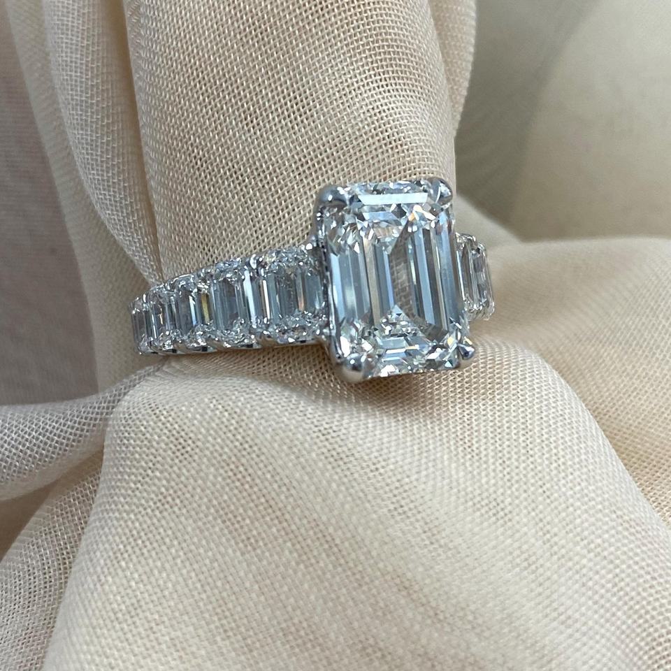 Anillo de compromiso de diamante cultivado en laboratorio con corte de Esmeralda, anillo de diamante de media eternidad certificado por IGI, anillo de aniversario de oro blanco de 14K