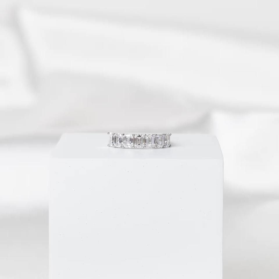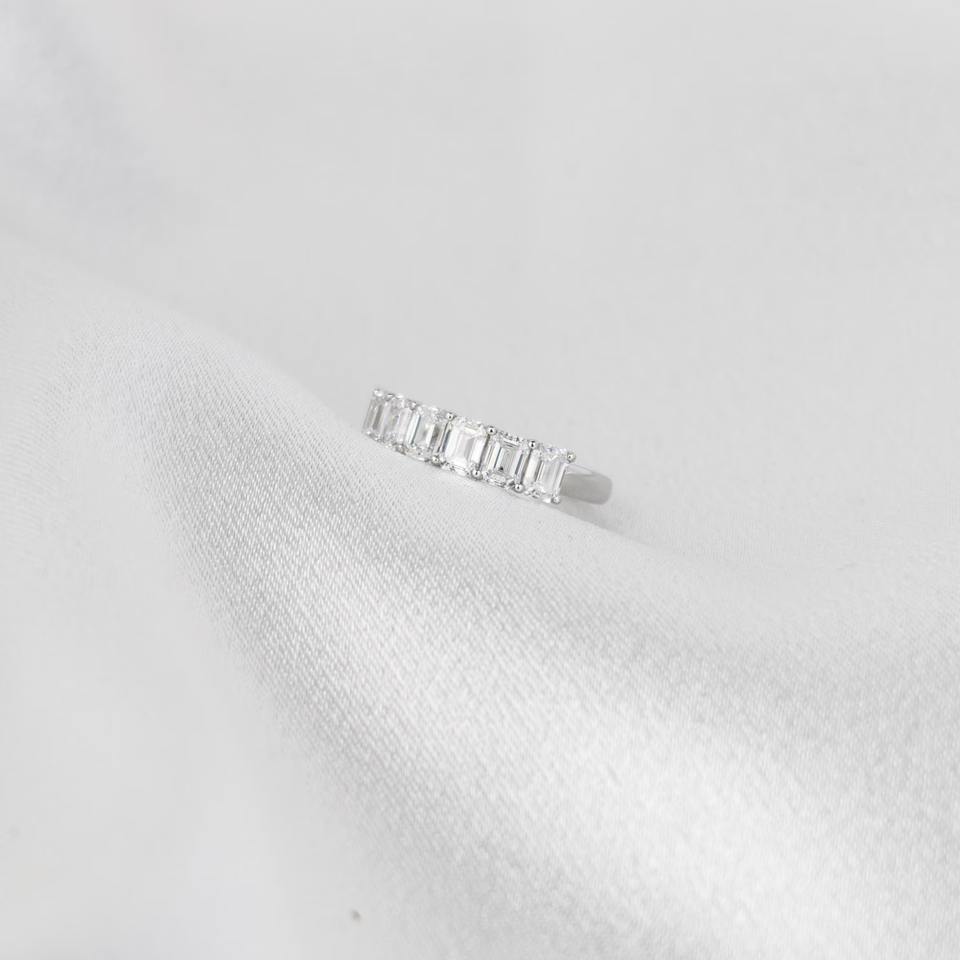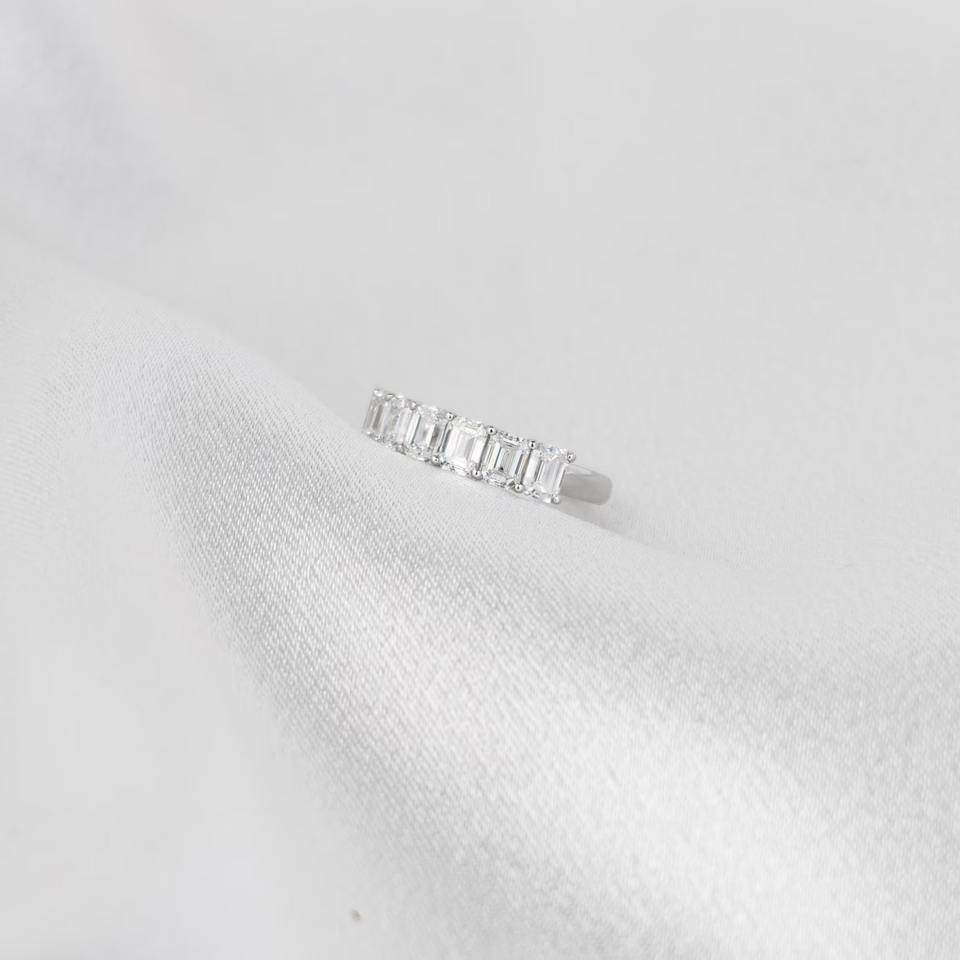 Anillo de Boda en Forma de U con Diamantes de Laboratorio Corte Esmeralda de 1.7 Quilates, Banda de Media Eternidad, Elegante Anillo Apilable de Diamantes, Joyería Fina