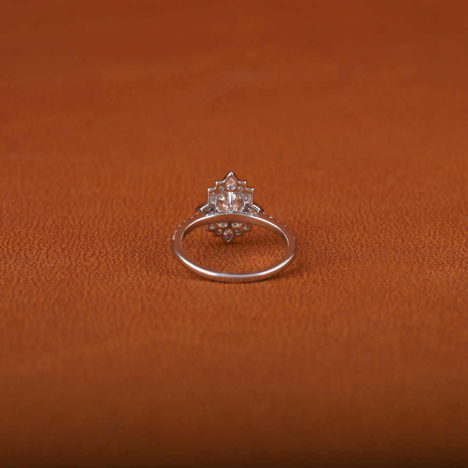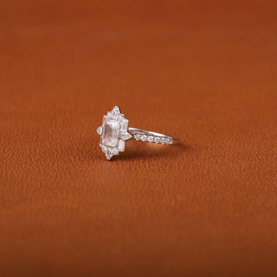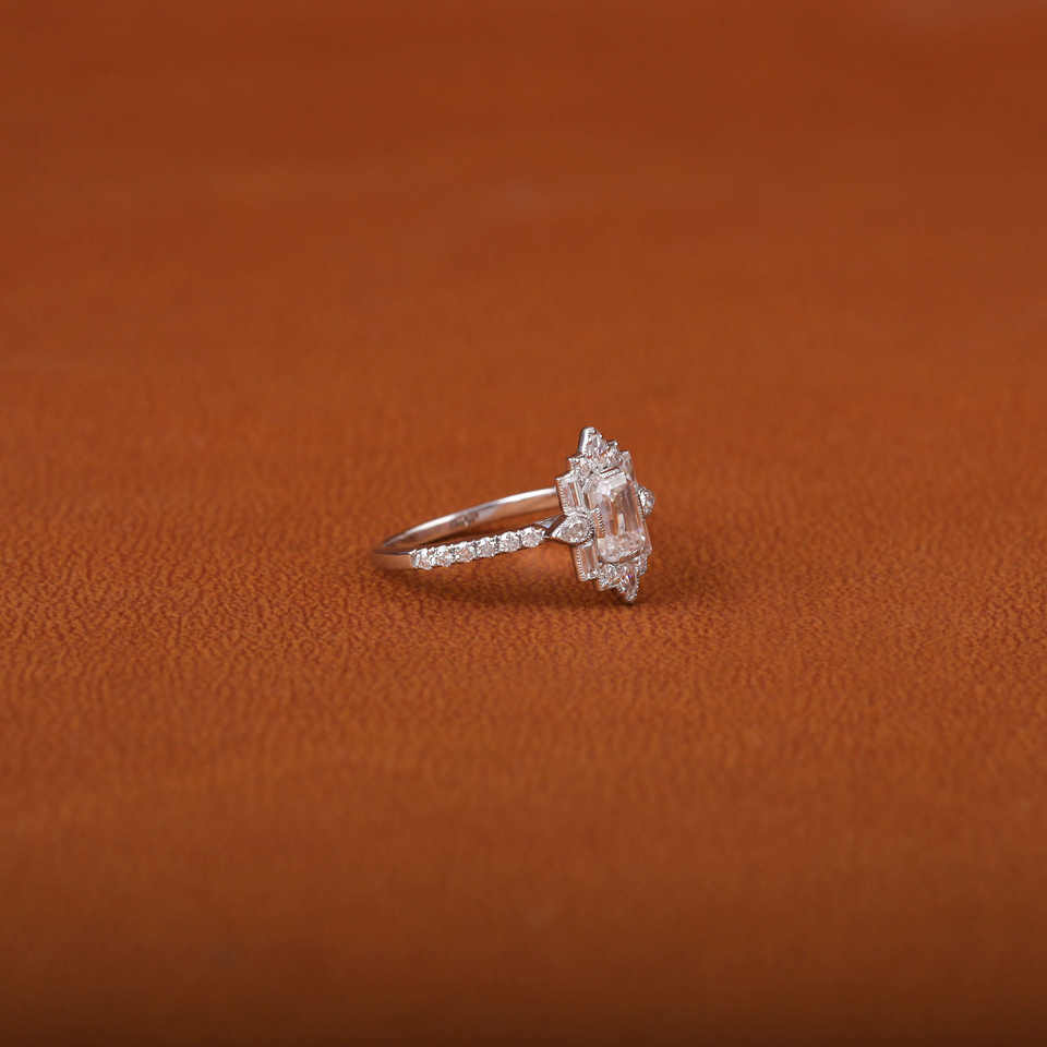 Anillo de compromiso solitario de diamante cultivado en laboratorio de corte esmeralda, Oro Sólido de 14 quilates con pera y acento de corte redondo, anillo de diamantes, regalo para mujer