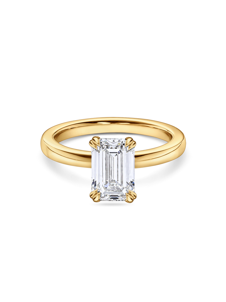 Anillo de compromiso solitario con diamante de laboratorio de corte esmeralda, oro amarillo macizo de 14K, anillo de boda con doble engaste de garra, joyería.