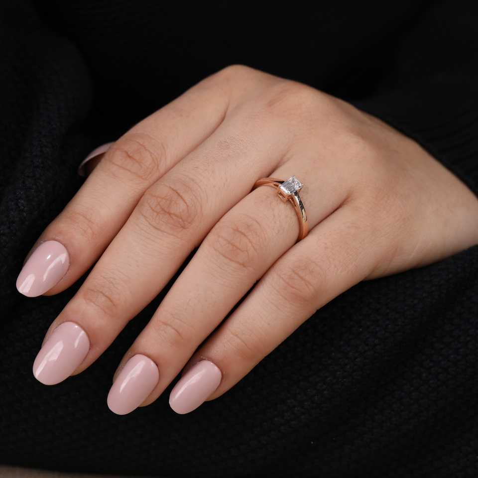 Anillo de Compromiso Solitario con Diamante Cultivado en Laboratorio, Corte Esmeralda, en Plata de Ley con Claridad VS1 - Diseño Elegante y Estilizado