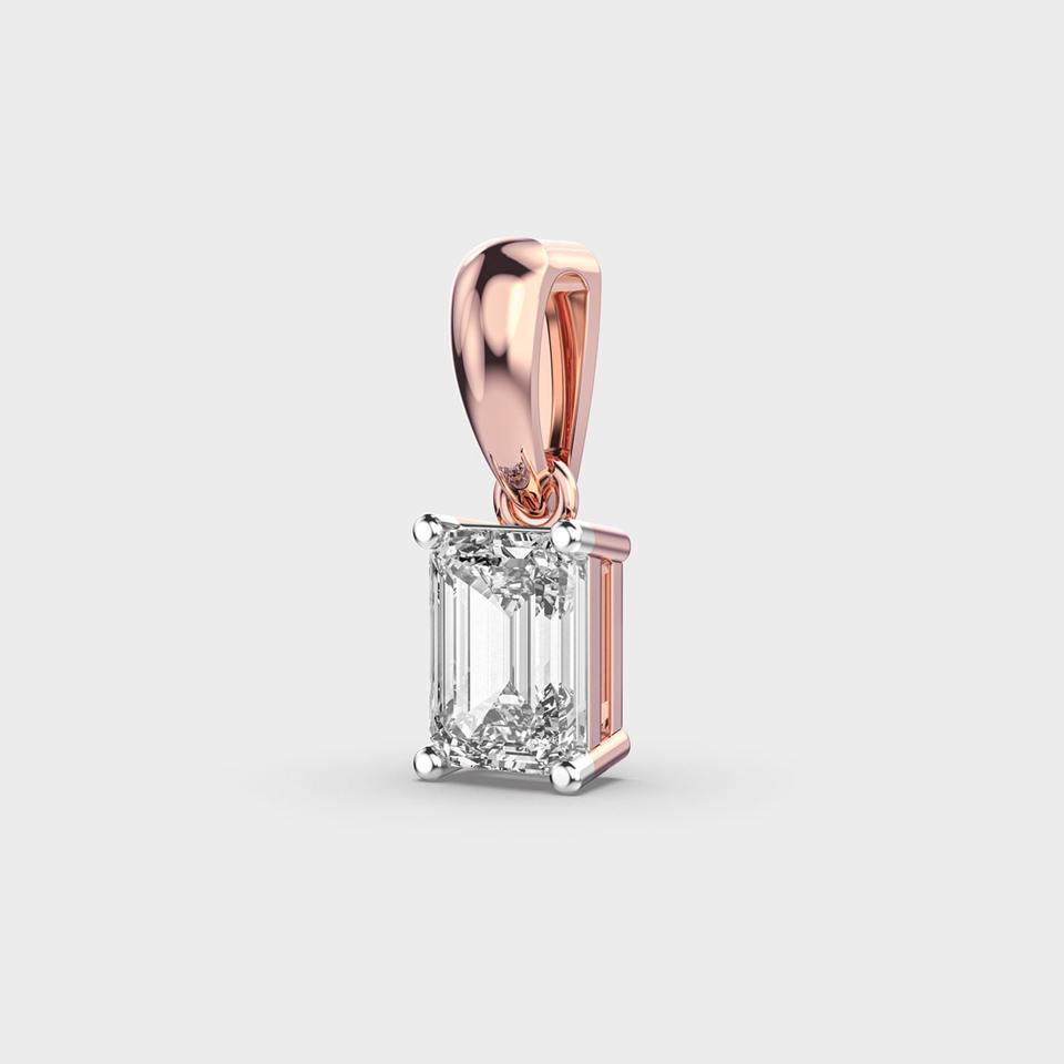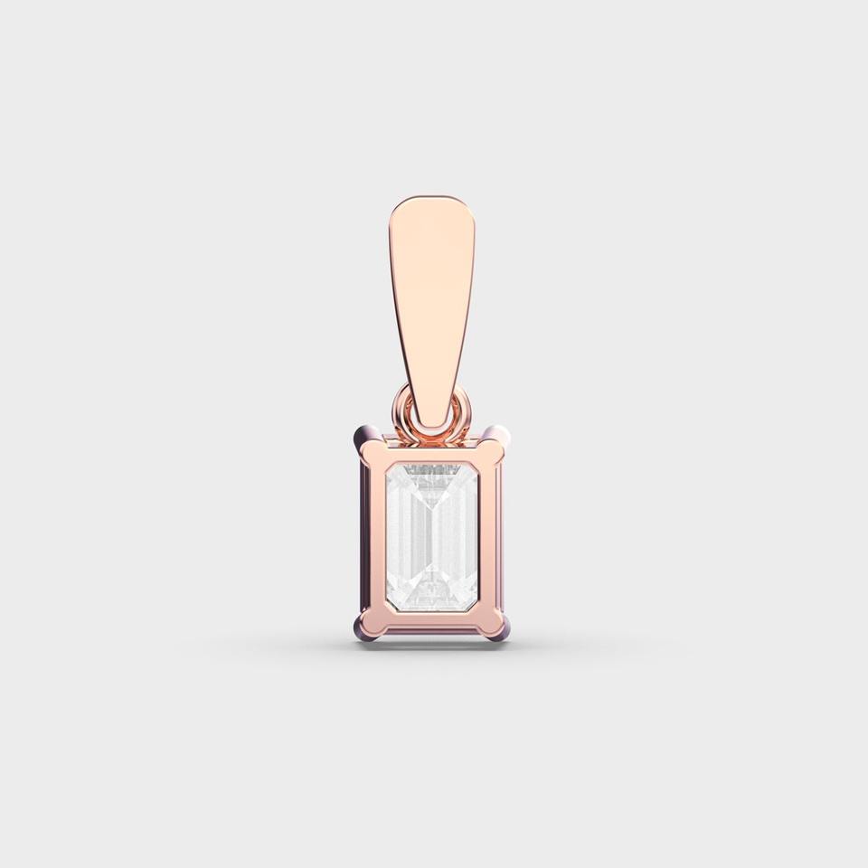 Colgante de Diamante Solitario Cultivado en Laboratorio con Corte Esmeralda, Engastado en Oro Rosa/Amarillo/Blanco de 9K con Baño de Rodio