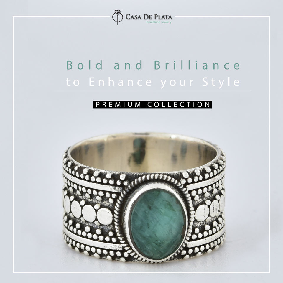 Esmeralda piedras preciosas 18k chapado en oro fabricante hecho a mano anillo de bajo precio de la joyería de la plata esterlina de casa de plata