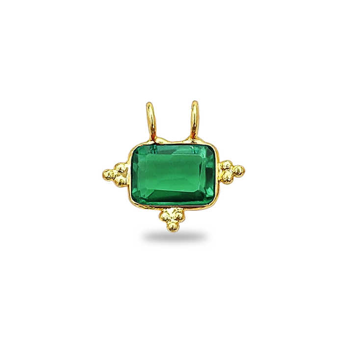 Colgante Rectangular de Cuarzo Esmeralda con Bisel Elegante, Chapado en Oro Hecho a Mano, Joyería de Esmeralda al por Mayor, Proveedor de Joyería de Piedras Preciosas Indias