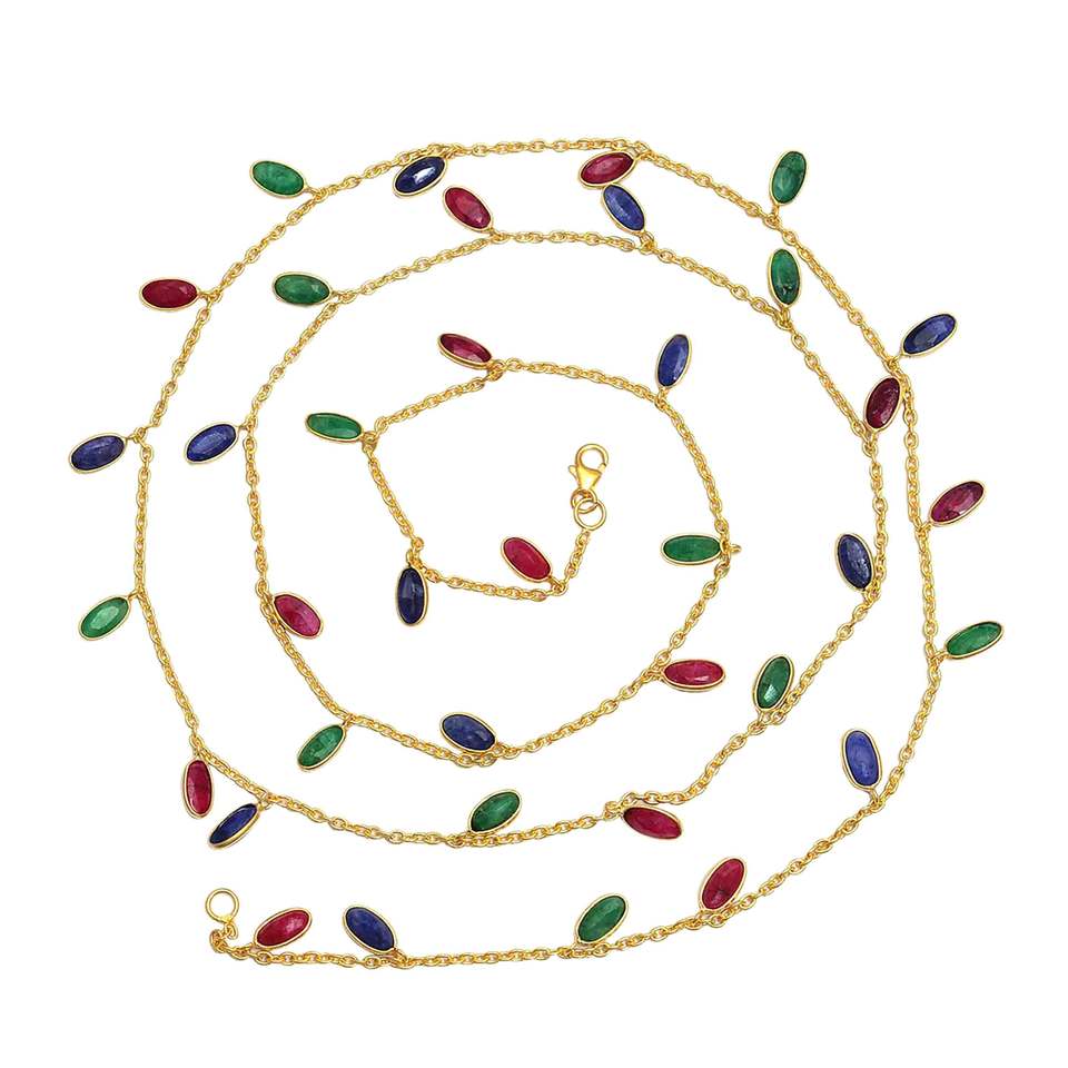 Collar de rubí y zafiro Esmeralda chapado en oro de 18k, cadena larga hecha a mano, joyería de plata de 18 ", piedra preciosa al por mayor