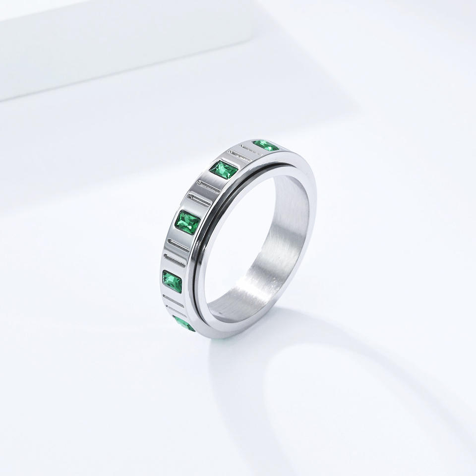 Anillo giratorio de acero de titanio con circonita esmeralda, joyería de moda para mujer, forma geométrica, regalo para el dedo índice