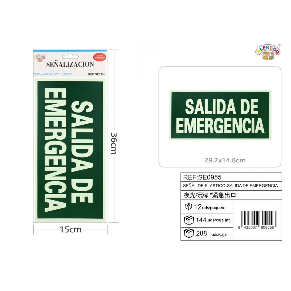 Letrero Plástico Salida Emergencia 29,7x14,8 cm-Señalización