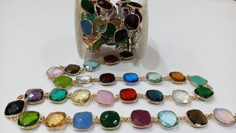 Eminent Jewel Bd1170, Piedra de Cristal Suelta de Alta Calidad, 15 mm, Conector de Bisel, Cadena, Piedra Preciosa Natural Multicolor, Forma de Cojín, Briolette