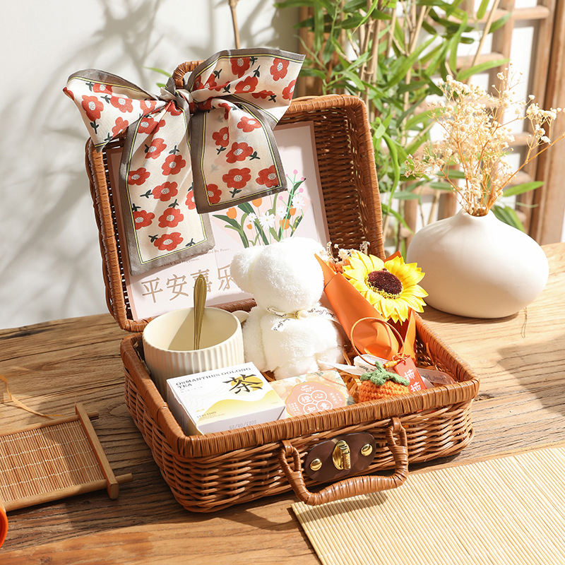 Juego de caja de regalo para empleados, cesta de mano tejida de ratán pequeña Vintage, cesta de Picnic para regalo de cumpleaños para niñas con recuerdos