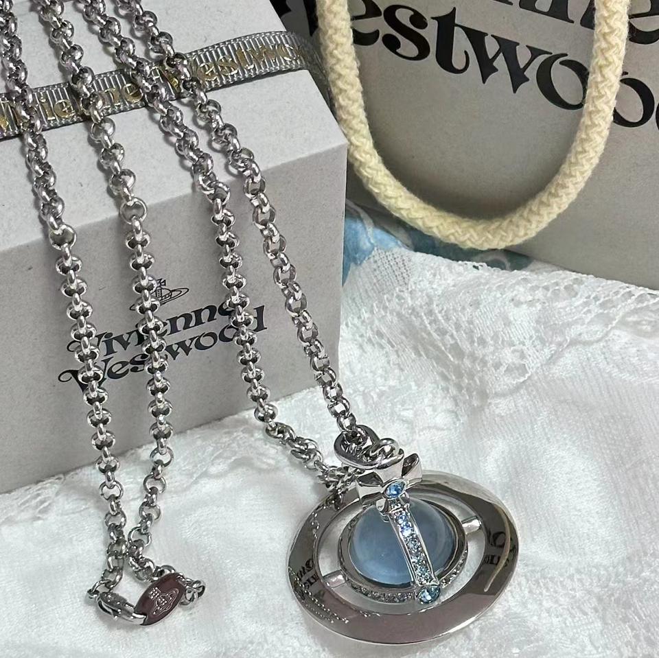 Collar con Colgante de Bola de Cristal y OVNI, Estilo Punk, Mariposa Vivienne, Chapado en Platino, Cadena de Eslabones, Marca MoLin