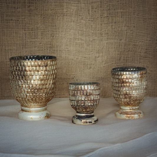 Velas votivas de oro oscuro hechas a mano antiguas de 3-5 pulgadas, decoración única para el hogar para festivales como Diwali, Navidad, Halloween