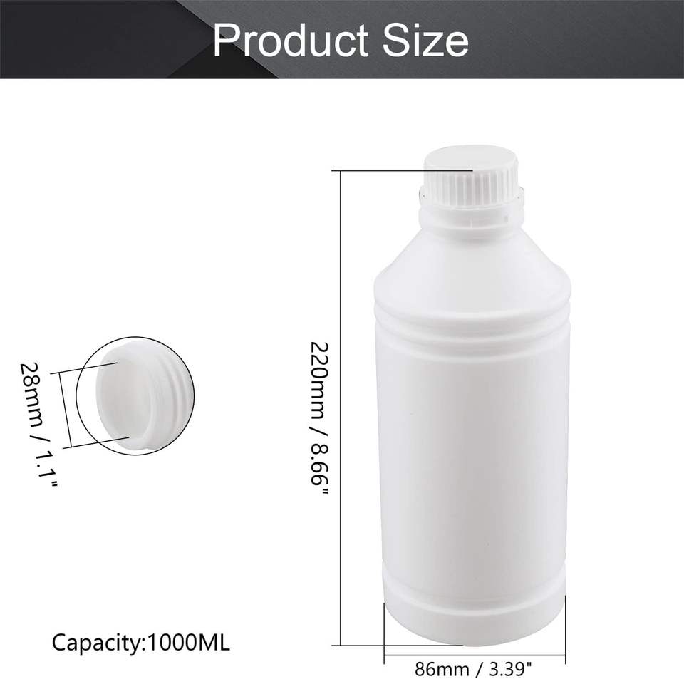 Botella de Plástico HDPE de 1L con Tapa de Rosca Blanca Personalizable, Cilindro para Detergente o Químicos, con Impresión Serigrafiada y Tamaño Personalizado
