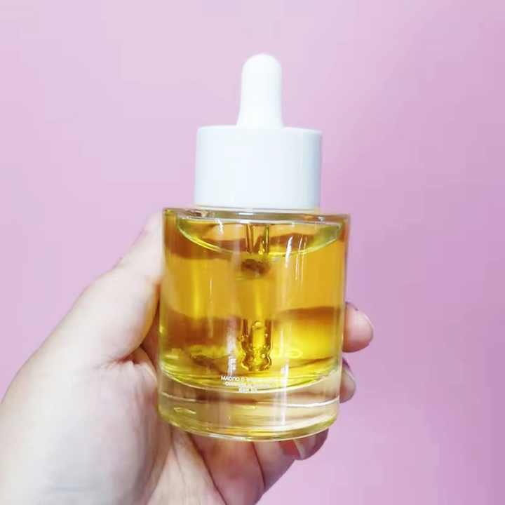 Botella de Vidrio Transparente de 30 ml (1 oz) para Suero Facial, con Fondo Grueso, Impresión de Logotipo Personalizado, con Gotero Blanco
