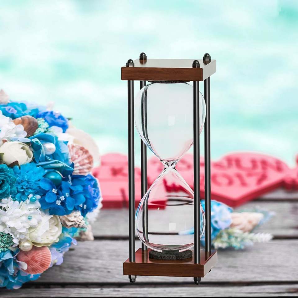 Reloj de arena vacío Fillable10 pulgadas Marco de madera Negro Grande Temporizador de arena DIY con herramientas de llave