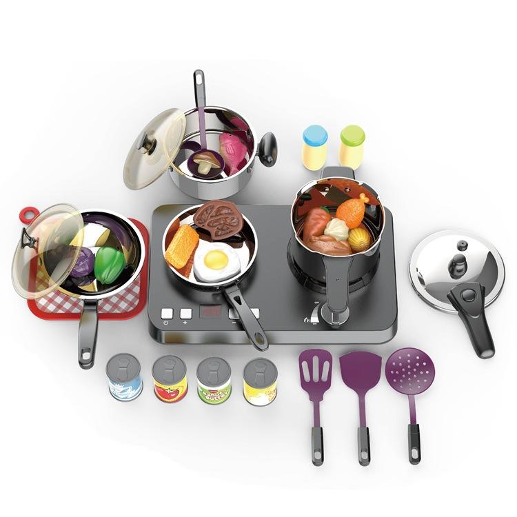Utensilios de cocina de inducción de acero inoxidable para niños, ollas y sartenes, vajilla de juego, Juguetes